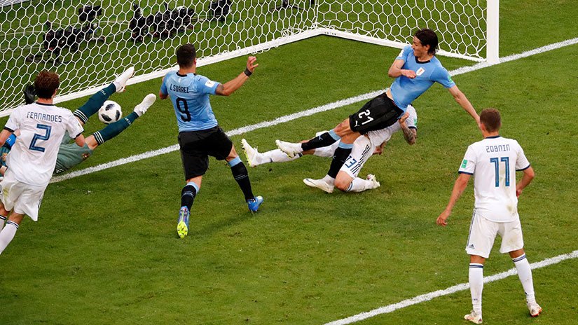 El conjunto charrúa se impuso con contundencia 3-0 a Rusia y terminó apoderándose del primer lugar del Grupo A. Suárez, Cavani y un autogol de Chéryshev le dieron el triunfo a la Celeste ante una Rusia que jugó condicionada desde el minuto 36' tras la expulsión de Smólnikov.