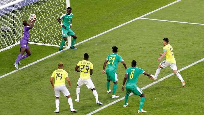 El número 5 de la selección de Senegal, Idrissa Gueye, estaba plácidamente recostado del palo izquierdo del arco y dejó pasar un disparo fulminante del futbolista colombiano Yerry Mina, sin siquiera inmutarse para atajarlo.