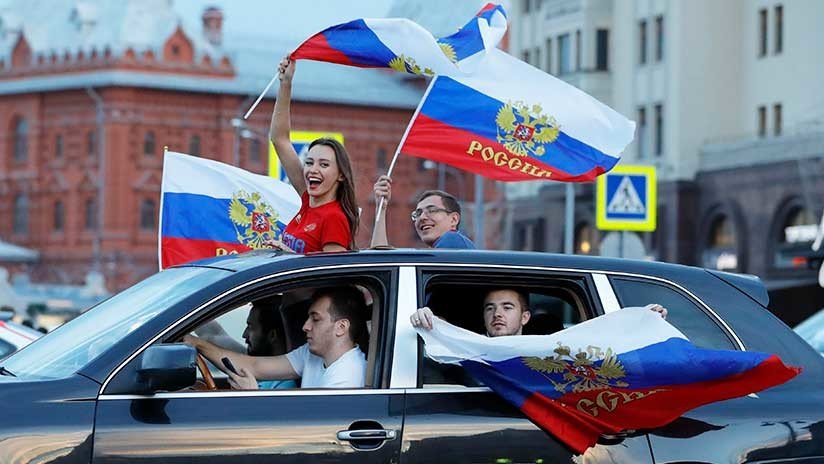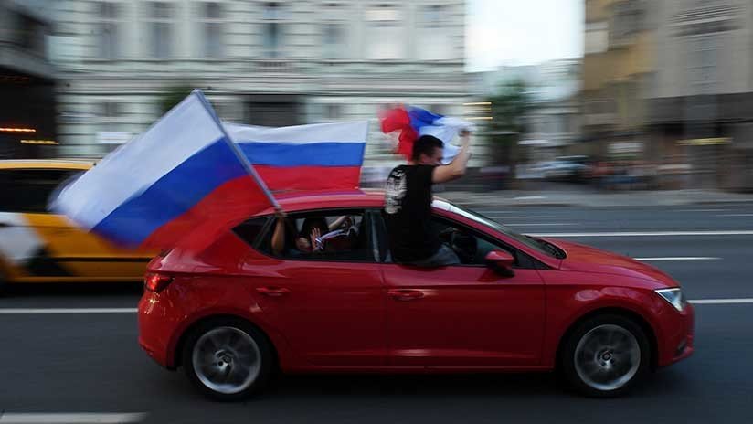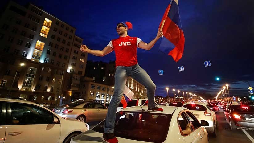La capital rusa se ha convertido en escenario de una gran fiesta. Un flujo interminable de coches hace sonar sus cláxones y multitudes gritan "¡Rusia!" y "¡victoria!", además de corear los nombres de los jugadores del equipo nacional.