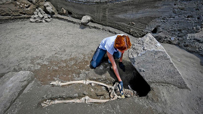 Tras encontrar el cráneo a pocos metros, las autoridades del Parque Arqueológico de Pompeya revelaron que el fallecimiento "no se debió al impacto de la roca", sino a la "asfixia" por haber inhalado "flujo piroplástico" emanado por el volcán Vesubio durante su erupción hace casi 2.000 años.