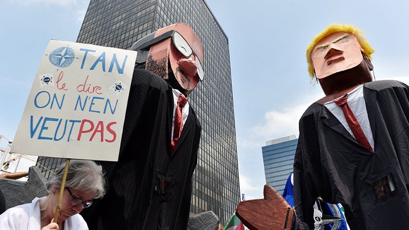 Cientos de personas han salido a las calles de Bruselas (Bélgica) demostrando su rechazo a la cumbre anual de la Organización del Tratado del Atlántico Norte (OTAN) prevista para el 11 y 12 de julio, a la que asistirá el presidente estadounidense, Donald Trump.