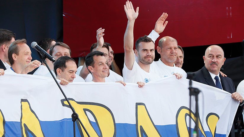 Luego de despedirse del campeonato tras su derrota ante Croacia, todo el equipo, junto con su entrenador, Stanislav Cherchésov, se encontró con la hinchada en Moscú.