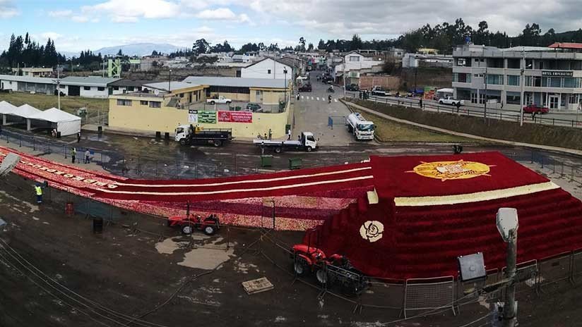El cantón Pedro Moncayo, de la provincia de Pichincha (Ecuador), buscó este sábado hacerse un hueco en Guinness World Records con el arreglo floral más grande del mundo, levantado en la plazoleta La Banda, de la población de Tabacundo, formado por entre 550.000 y 560.000 rosas.