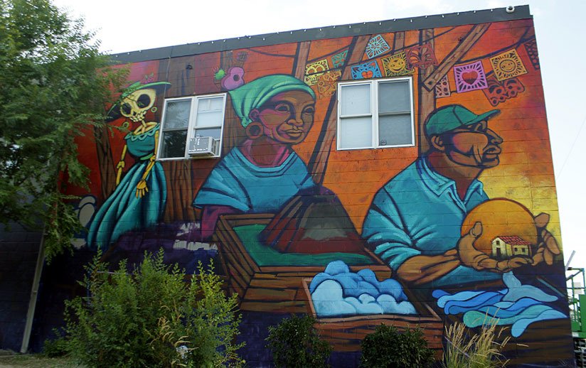 Un grupo de muralistas llamado 'Goodspace Murals', liderado por Greta McLain y Cándida González, lo escogió para que sus pinceles vistan la estructura del mercado operado por comerciantes latinos, casi todos mexicanos. Esa agrupación financia el trabajo artístico del venezolano en esa comunidad estadounidense.