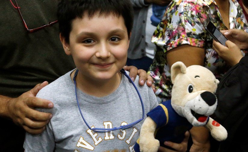 Acompañado por sus padres, Arcelia Díaz y Fabián Santamaría, el niño cubrió un horario de 10:00 a 17:00 horas en su primer día de clase.