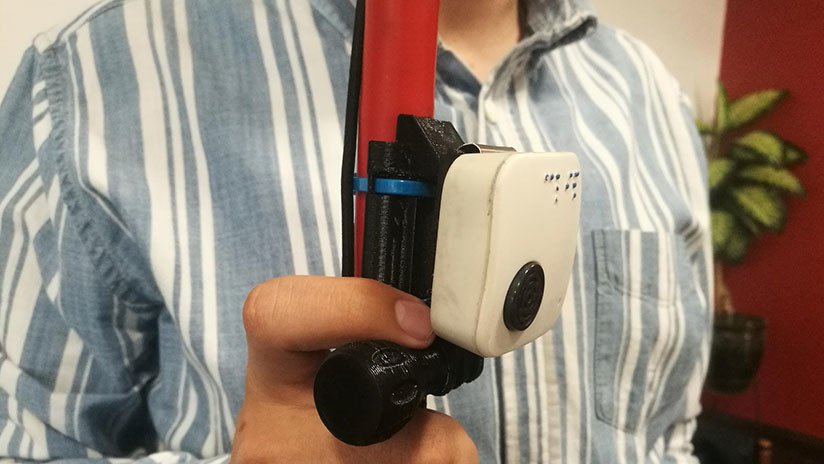 "Cuando ya aparecen letreros, postes y ese tipo de situaciones, el EyeClip, con su alarma o vibraciones, nos advierte", comenta Freire, quien decidió usar el dispositivo en el bastón, con un 'clip' que elaboraron, también, los responsables de HandEyes. Entonces —señala— "el bastón nos ayuda y nos protege en los obstáculos de abajo y el EyeClip cuando hay obstáculos arriba".