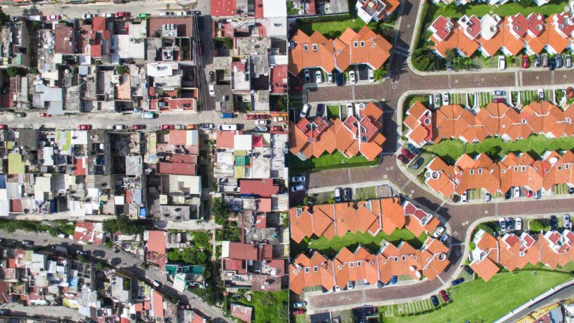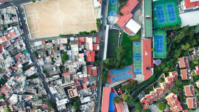 Las imágenes del fotógrafo estadounidense Johnny Miller tomadas con un dron en el marco del proyecto 'Unequal Scenes' ('Escenas de desigualdad') captaron los contrastes económicos y sociales que dividen a pobres y ricos en el país. En las fotos obtenidas en varias ciudades del país, sobre todo en la Ciudad de México, se aprecia cómo las residencias de lujo se encuentran prácticamente 'pared con pared' junto a las casas humildes.