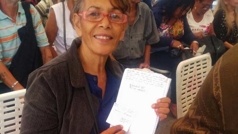 Mariela Camero, docente jubilada, de 63 años, relata que primero fue a la sede del BCV a informarse y que este viernes compra una porción. Explica que perdió el "hábito del ahorro" porque "los comerciantes nos hicieron un daño terrible". "Desde hace tres años no podía ahorrar nada. Esto es un respiro".