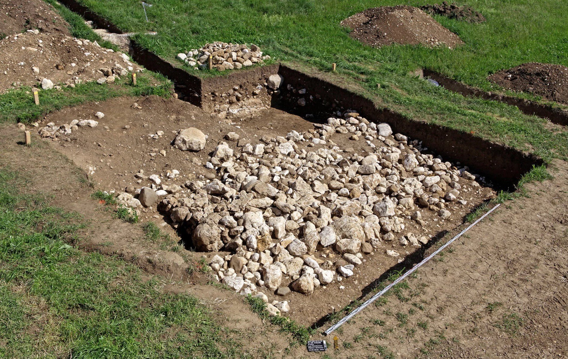 Durante la pasada primavera, los arqueólogos regresaron al lugar donde descubrieron la mano y hallaron una tumba. El lugar de enterramiento contenía los huesos de un hombre adulto, un peroné de bronce, un adorno de este mismo material bronce en forma de espiral y pequeños pedazos de oro. Además, los entusiastas encontraron un dedo de bronce partido en el sitio funerario, lo que proporcionaba más pruebas de que la mano había sido enterrada allí también.