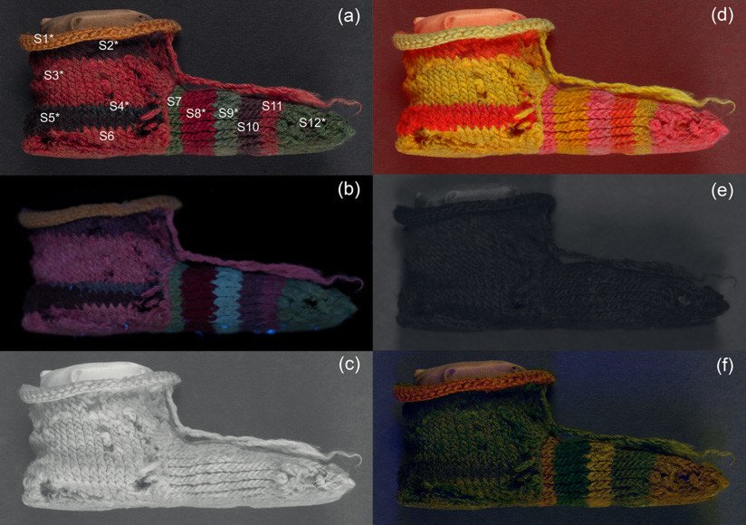 Los expertos sometieron a una técnica de multiespectro mediante una cámara Canon 40D diferentes artículos de tela guardados en el museo, entre ellos, un calcetín infantil de lana y lino producido entre los siglos III y IV en la ciudad egipcia de Antinoópolis.