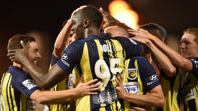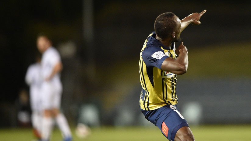 El deseo de Usain Bolt de convertirse en delantero profesional comenzó a hacerse realidad, con los primeros dos goles que anotó para su equipo de la liga australiana de fútbol.