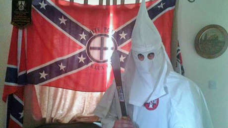 Una tercera imagen, de lo que la Fiscalía denominó el "álbum de la familia Thomas-Patatas", muestra supuestamente al joven con un "machete" en mano y ataviado del Ku Klux Klan, delante de una bandera confederada de los EE.UU.