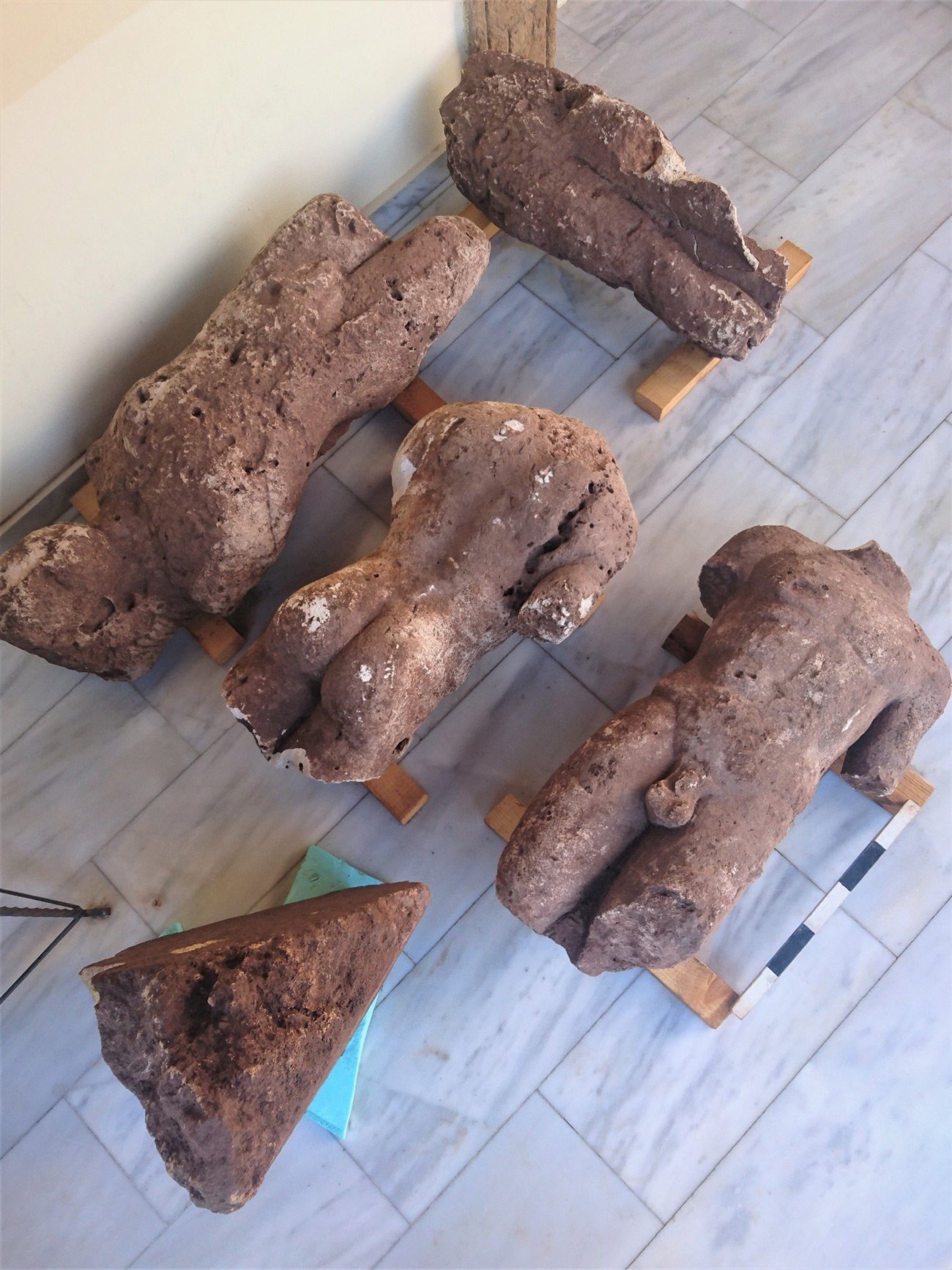 Un grupo de arqueólogos ha desenterrado tres estatuas más, midiendo la más alta 1,22 metros, así como una base triangular. Todos los objetos, de piedra caliza, datan de los siglos VIII al V a.C.