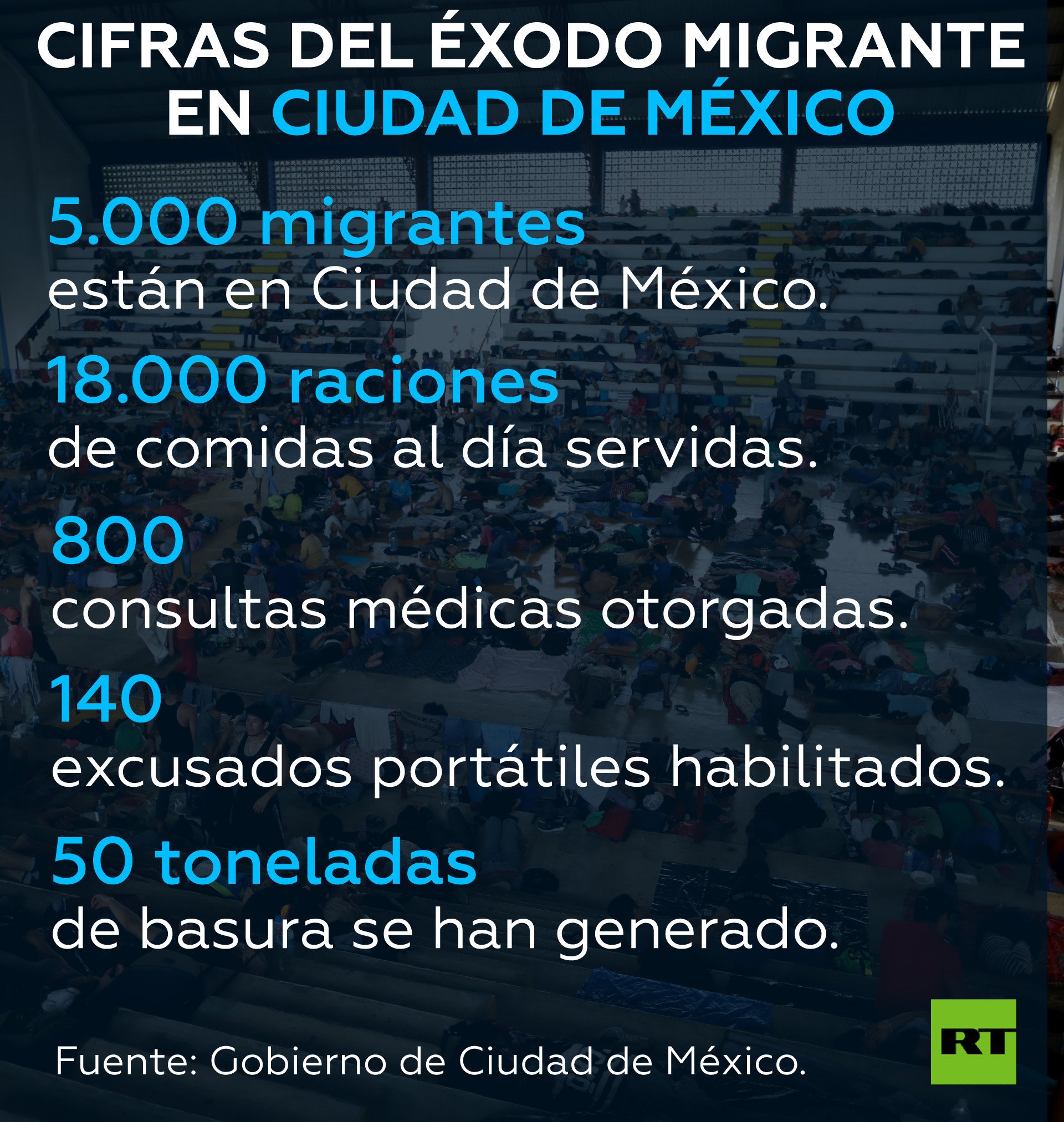 Hasta la noche de ayer, alrededor de 5.000 migrantes se encontraba en el albergue que se ha denominado como 'Ciudad Palillo', un complejo deportivo al oriente de la capital mexicana que lleva el nombre del actor Jesús Martínez 'Palillo' en Ciudad Deportiva, en la alcaldía de Iztacalco.