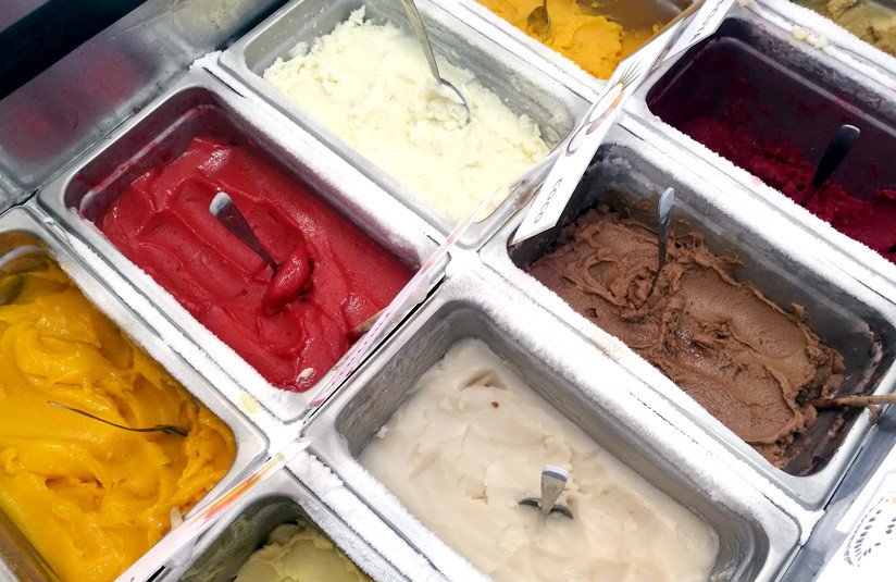 En el local de la avenida Machala de Quito ofrecen sabores frutales como mora, guanábana, maracuyá, frutilla (fresa), y los excéntricos taxo y naranjilla. También hay a base de leche, como los de chocolate, coco, ron pasas y vainilla.