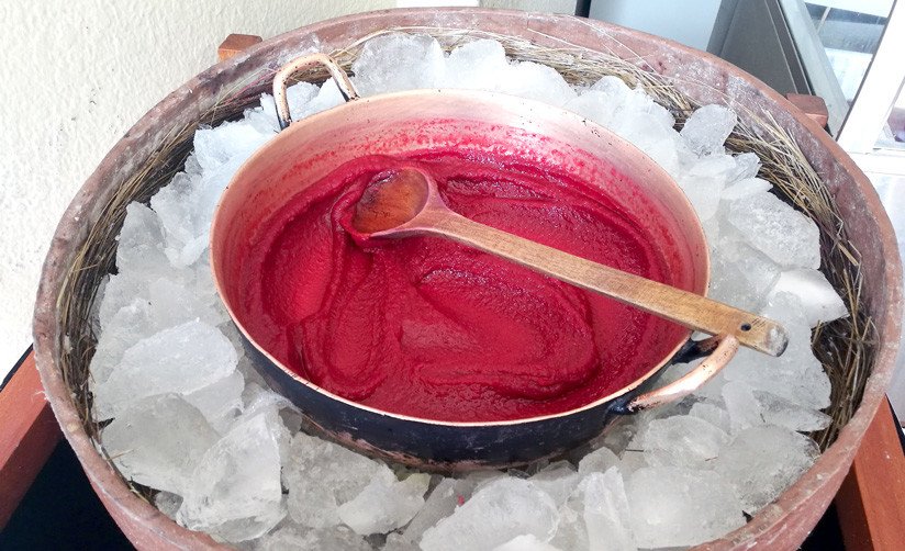 "El jugo tiene su gran importancia aquí", dice Vega, quien resalta que buscan que "sea lo más natural posible". Para ello, se selecciona la fruta, se hace el licuado con azúcar moderada (las cantidades son un secreto de la receta) y se cierne en un cedazo de cerda de caballo.