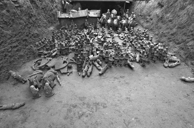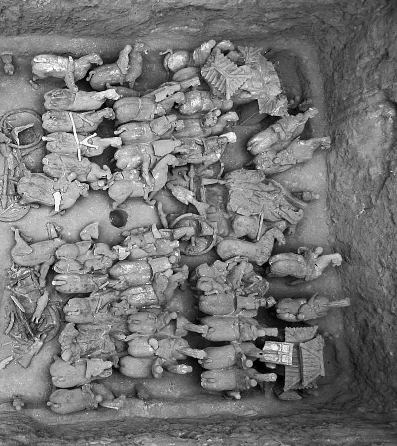 Este descubrimiento incluye alrededor de 300 guerreros que miden entre 22 y 31 centímetros y vehículos cuidadosamente arreglados, así como estatuillas de caballería, infantería, músicos y atalayas.
