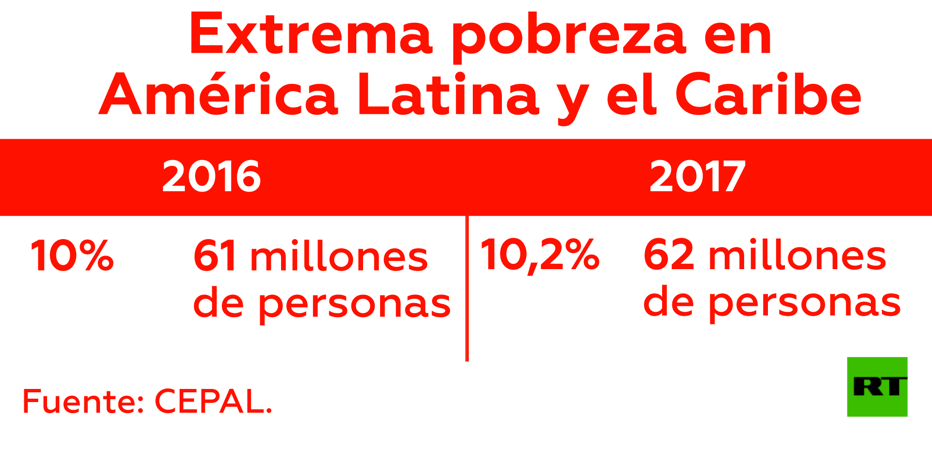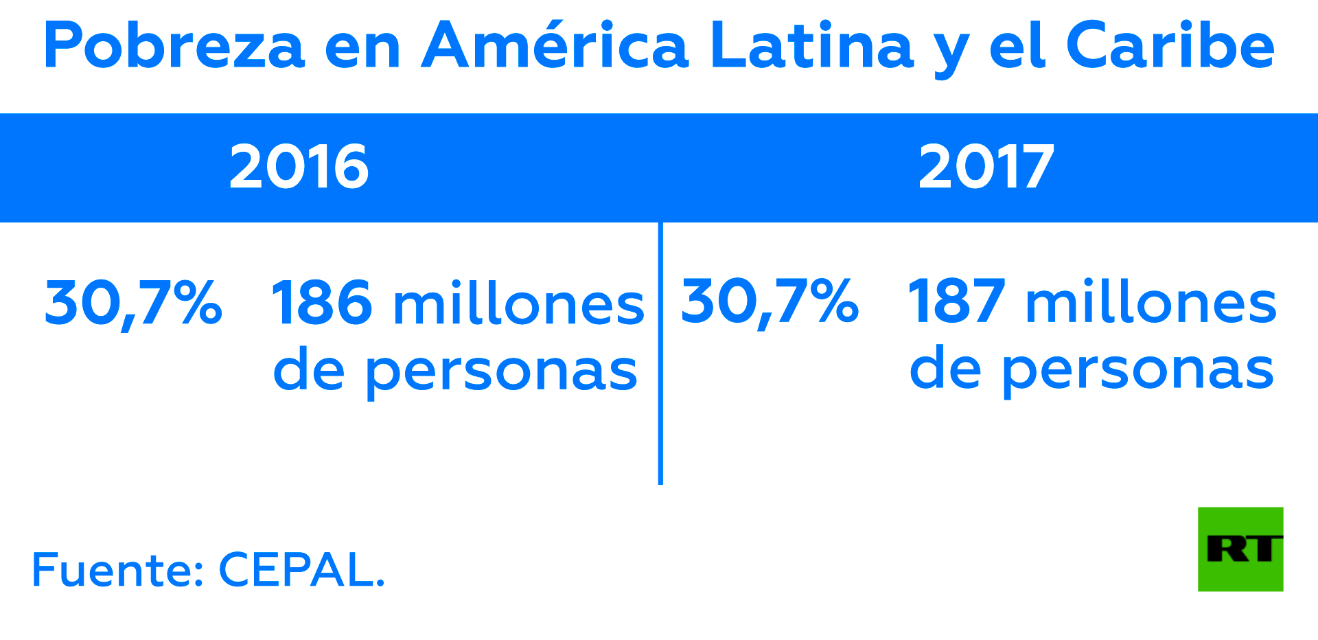 En el texto, la CEPAL detalla que para 2016, 186 millones de personas [30,7 % de la población] vivían en pobreza; y 61 millones [10 %] en extrema pobreza.