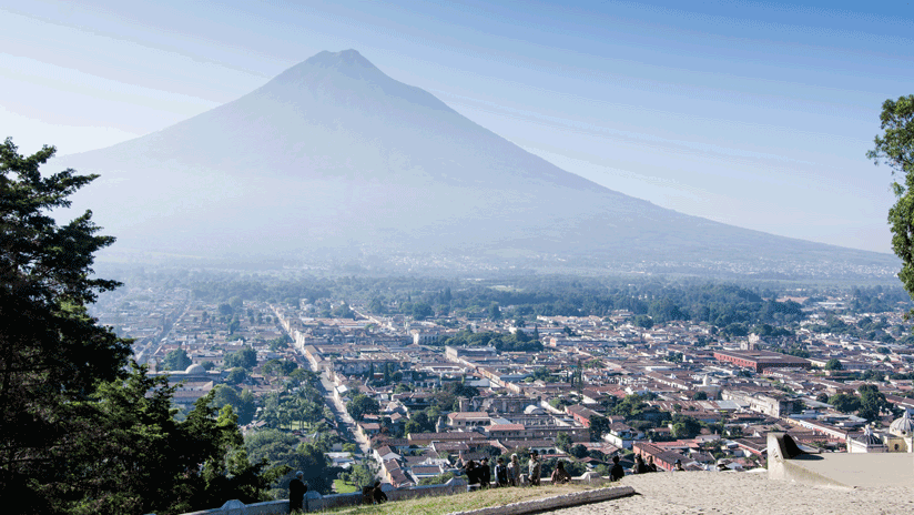 La ciudad de Antigua, poblada por poco más de 45.000 habitantes, está situada en el sur de Guatemala, a unos 45 kilómetros al oeste de la capital.