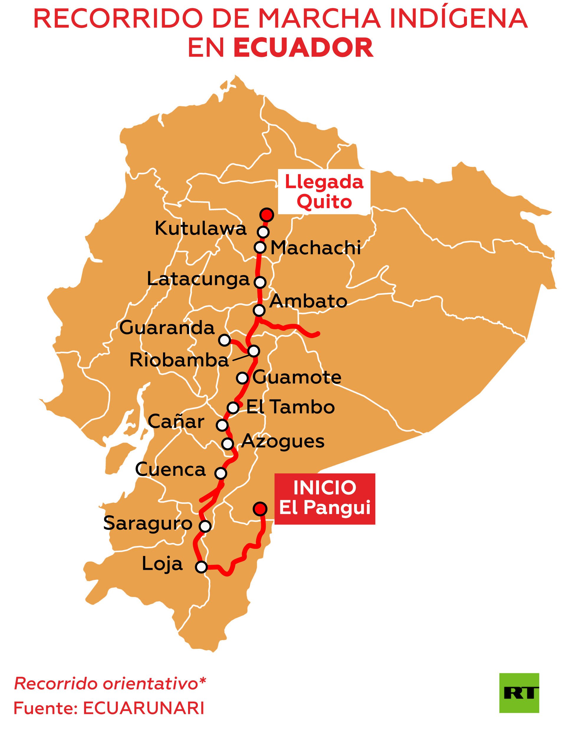El pasado miércoles 14 de noviembre, cientos de indígenas, agrupados en la Confederación de Pueblos de la Nacionalidad Kichwa del Ecuador (ECUARUNARI), que forma parte de la Conaie, llegaron a Quito, tras 11 días de caminata, en un periplo que partió de la parroquia rural de Tundayme, en el cantón El Pangui, en la provincia de Zamora Chinchipe, en el suroriente del país.