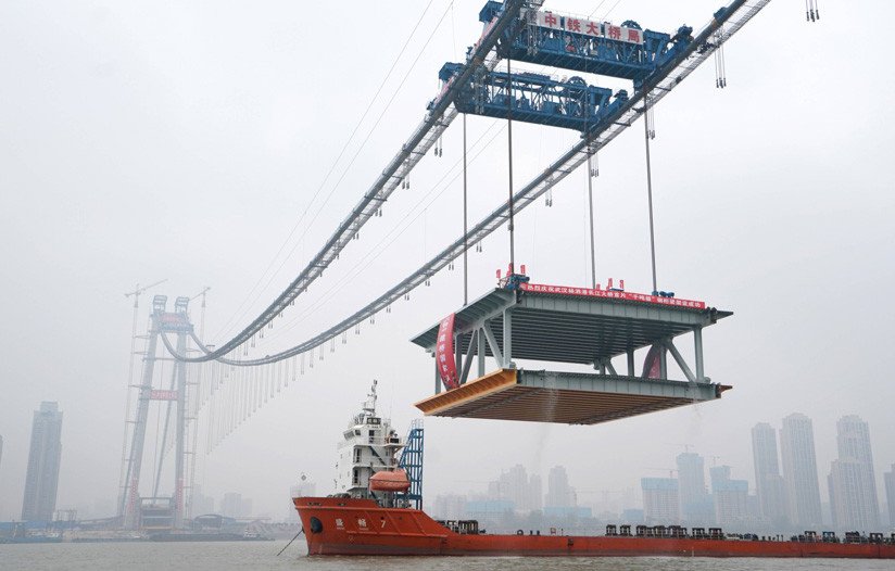 Ese paso sobre el río Yangtse contará con 49 vigas de acero, cada una medirá 36 metros de largo por 32,5 de ancho y 10 de altura y pesará alrededor de 1.000 toneladas.