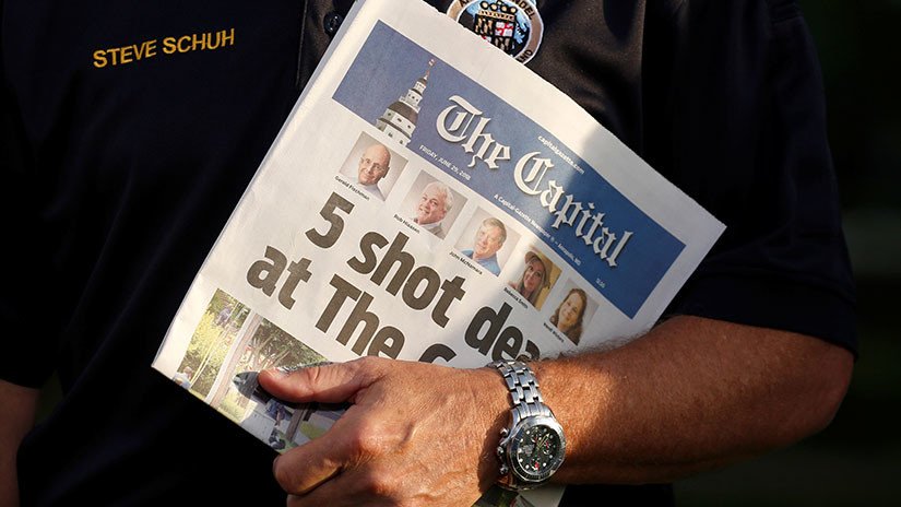 Por último, Time decidió galardonar a los cinco miembros del diario estadounidense The Capital Gazette que murieron después de que el pasado 28 de junio un hombre armado identificado como Jarrod Ramos perpetrara un tiroteo en sus oficinas, situadas a las afueras de Annapolis (Maryland, EE.UU.), que también dejó varios heridos. Desde 2011, Ramos había mantenido una disputa con el periódico, al que acusaba de difamación por un artículo sobre su persona en el que se hablaba de sus antecedentes penales por ciberacoso.