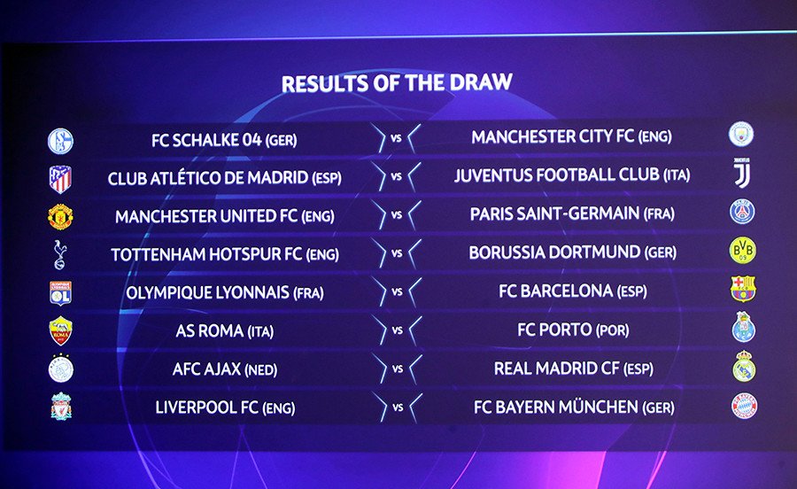 La UEFA ha definido este lunes en su sede en Nyon (Suiza) las parejas de equipos que se verán las caras en la ronda de octavos de final de la Liga de Campeones 2018-2019. El sorteo ha resultado de la siguiente forma: