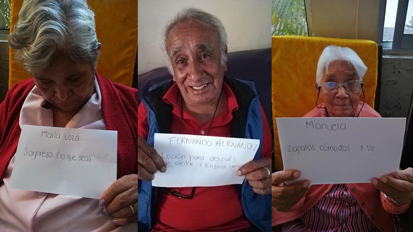 Cada adulto mayor del asilo Las Palomas publicó en Facebook una foto con su nombre y el regalo que les gustaría recibir; la convocatoria tiene la intención de captar gente interesada en apadrinar algunas de las necesidades de las personas de la tercera edad. "Para usted, lo que pidió", le dice un hombre a Fernando, un anciano que conserva la misma sonrisa que se le ve en la foto en la que solicitó "una loción para afeitar English Lady".