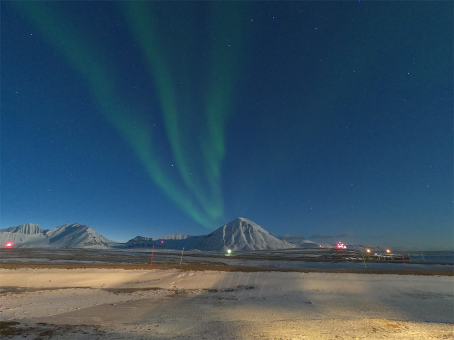 La segunda fotografía muestra la aurora en Ny-Alesund a finales de noviembre de 2018.