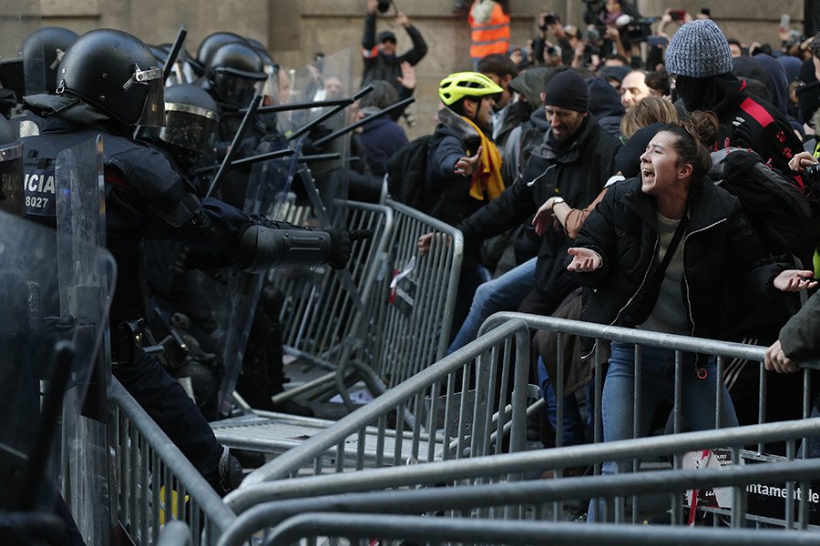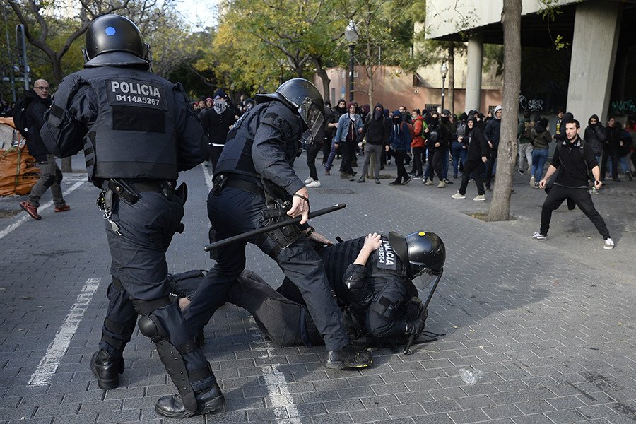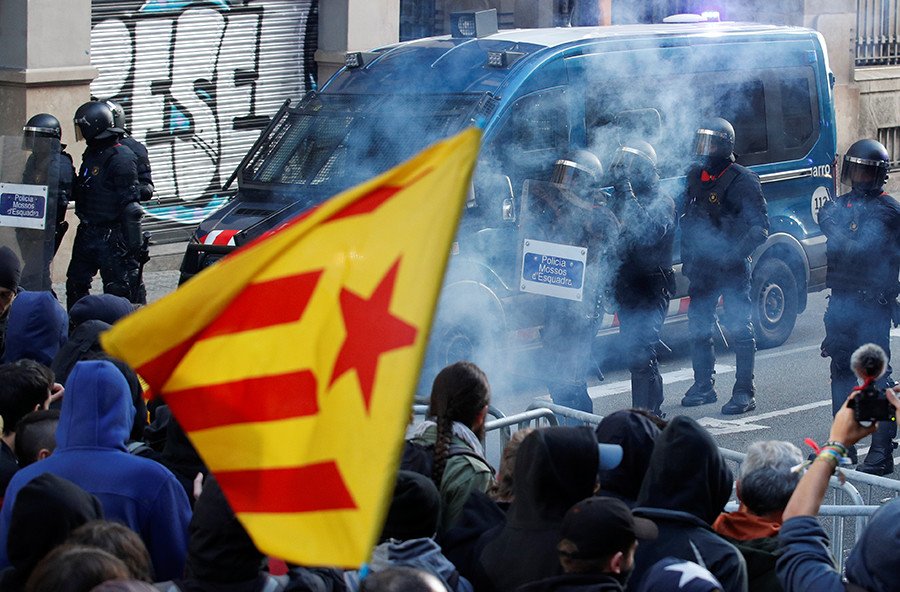 VIDEO: Catalan pro-independence groups blocked roads in Barcelona Friday to protest a planned cabinet meeting in the city chaired by a Spanish Prime Minister Pedro Sanchez pic.twitter.com/OvPPKL984w