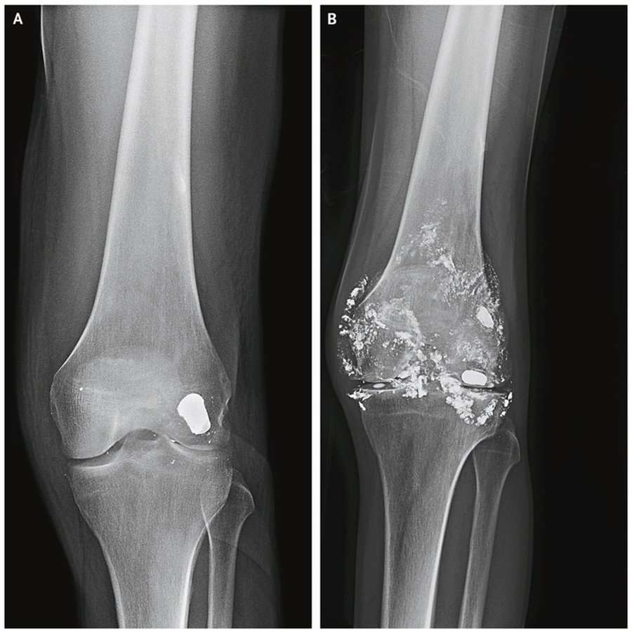 Este inusual caso clínico fue dado a conocer este jueves en la Revista The New England Journal of Medicine. Según se explica, el paciente fue víctima de un disparo en una rodilla catorce años atrás. Las radiografías revelaron que el proyectil quedó encajado en la parte posterior de su fémur, cerca de la articulación de la rodilla y nunca fue retirado.