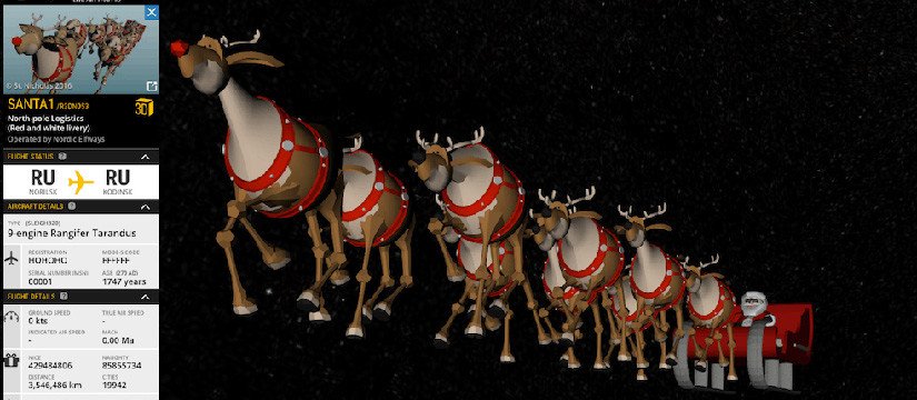Flightradar24 te permite seguir a Papá Noel en 3D. Según la plataforma, la tecnología utilizada para rastrearlo solo está disponible en la página de www.Flightradar24.com. Sin embargo, el portal asegura que se están llevando a cabo negociaciones con el sindicato de elfos para ponerlo en funcionamiento en los teléfonos móviles el año que viene.