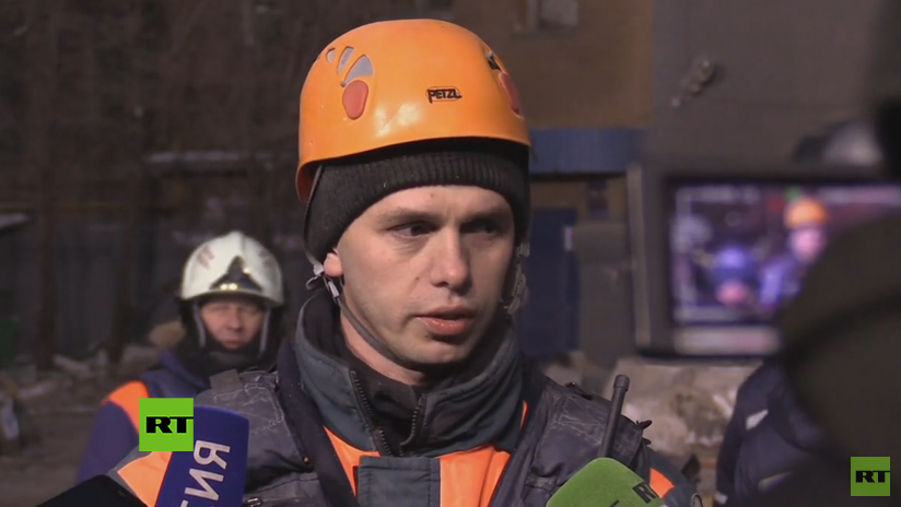 Piotr Gritsenko, especialista del Ministerio en operaciones de riesgo especial y responsable de los trabajos de emergencia en la zona, señala que mientras los rescatistas realizaban trabajos en el lugar del derrumbe uno de ellos oyó un llanto infantil.