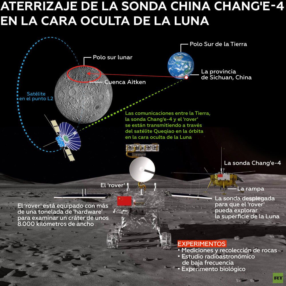 - La nave espacial —que lleva el nombre de la diosa lunar en la mitología china— aterrizó con éxito en el sector oculto de la Luna, que nunca antes se había explorado. De esta manera, el país asiático se ha convertido en la primero en la historia que logra hacer aterrizar con éxito una sonda en esta zona del único satélite natural de la Tierra.