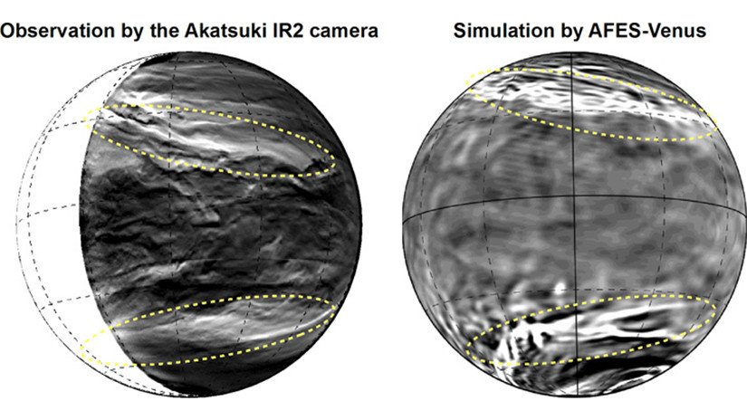 Para explicar el fenómeno, los científicos recurrieron a un programa AFES-Venus de simulación de la atmósfera del 'gemelo' de la Tierra. Las imágenes obtenidas por la sonda son casi idénticas a las generadas por el programa, confirmando que las simulaciones de AFES-Venus son precisas.