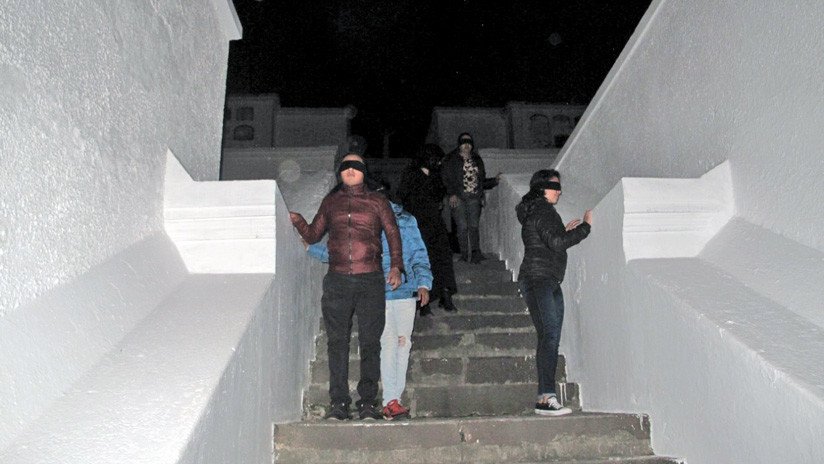 El único lugar donde se le permitió a los visitantes quitarse la venda fue en un nicho subterráneo, que estaba totalmente a oscuras y se podía escuchar el clamor de niños.
