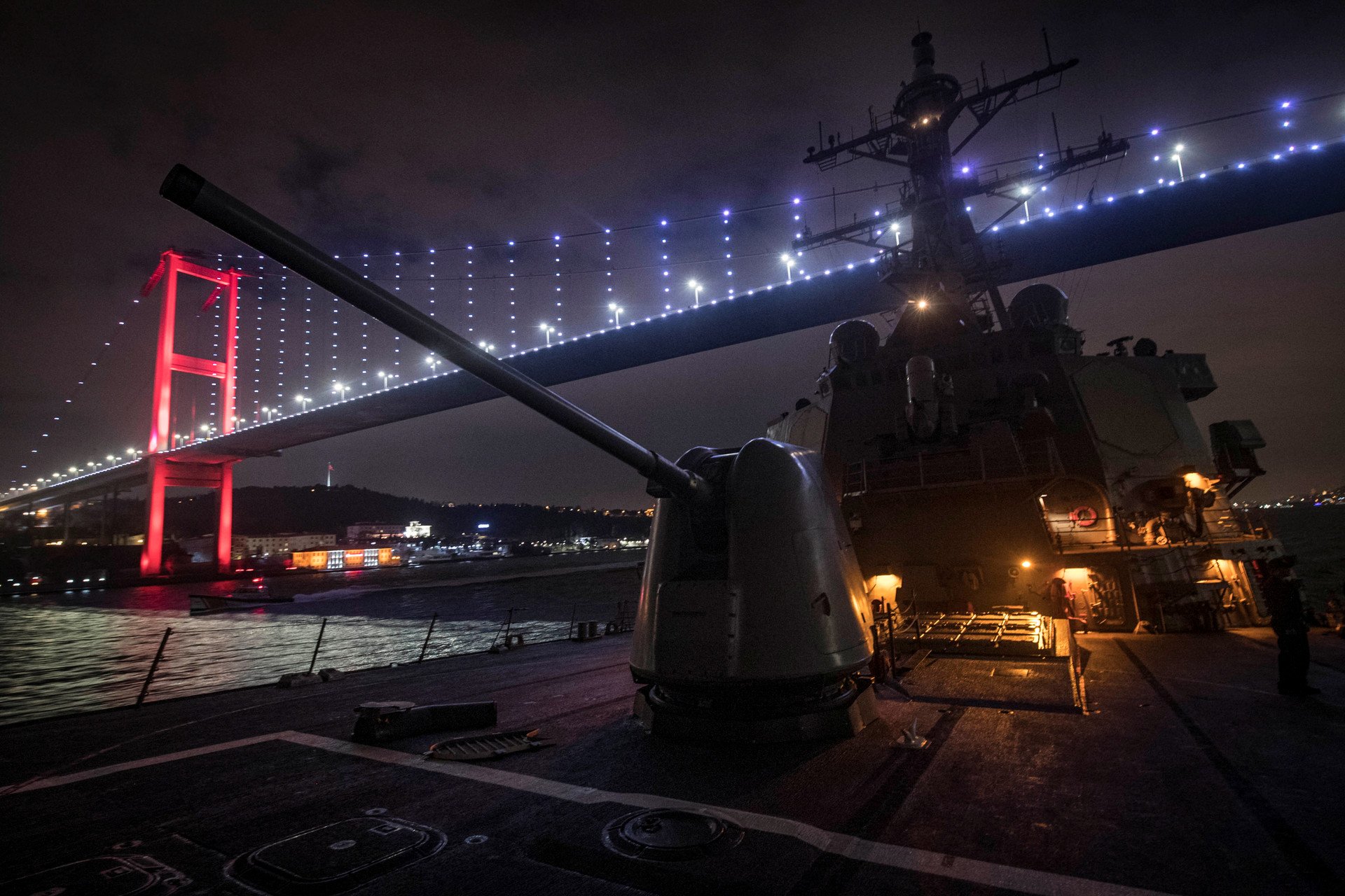 El buque de guerra estadounidense USS Donald Cook fue grabado mientras se dirigía al mar Negro a través del estrecho del Bósforo en Estambul (Turquía) el 19 de enero de 2019.