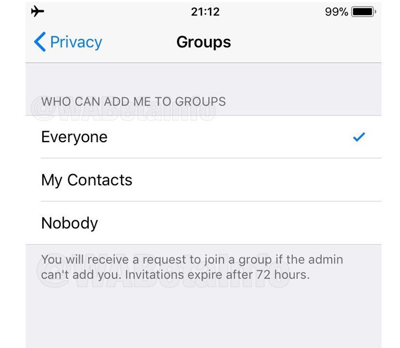 El servicio de mensajería WhatsApp prepara una opción que permitirá a los usuarios no ser incluidos a grupos de chat sin su permiso. Esta nueva característica obligará a los administradores a enviar una solicitud a quien se desea incorporar, que expirará a las 72 horas.