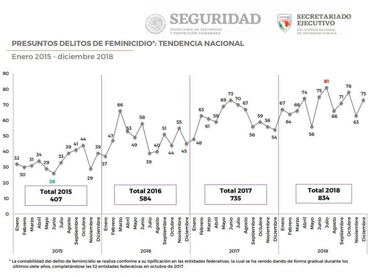 Las cifras provienen de la información registrada en las carpetas de investigación iniciadas ante el Ministerio Público y son proporcionadas mes a mes por las procuradurías y fiscalías generales de las 32 entidades federativas. Es decir, se trata de presuntos hechos delictivos.