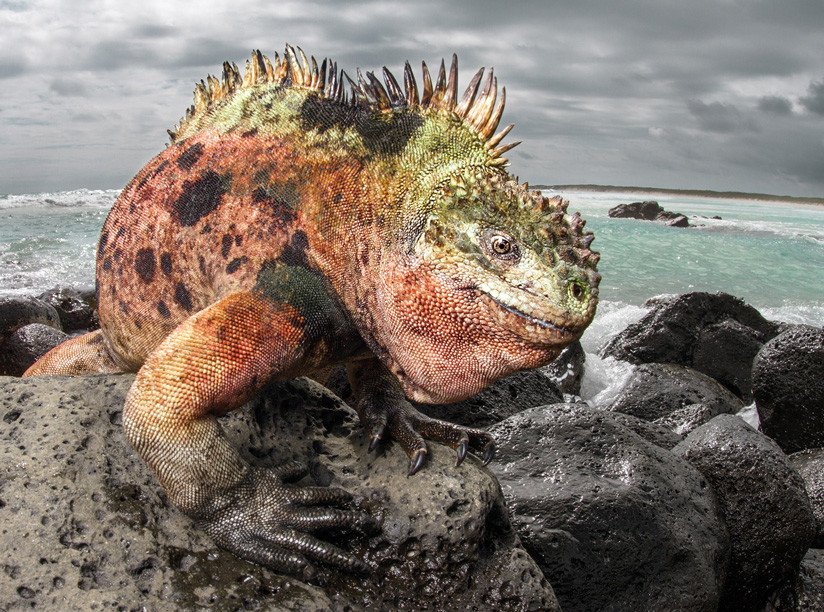 - Es el único representante de las iguanas y lagartijas del mundo que vive y se alimenta en el mar. "Lo interesante de esta especie es que se ha adaptado para comer algas que crecen en las rocas de la zona intermareal y ha desarrollado una capacidad para excretar la sal que consume en estas algas, mediante estornudo", explica el biólogo.