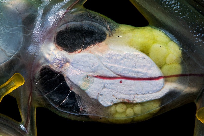 - Se caracteriza por ser el anfibio más transparente del planeta. Se pueden ver todos los órganos internos: el corazón, los intestinos, los embriones en desarrollo, las venas, los huesos. "Es prácticamente una clase de anatomía en vivo", menciona Arteaga.