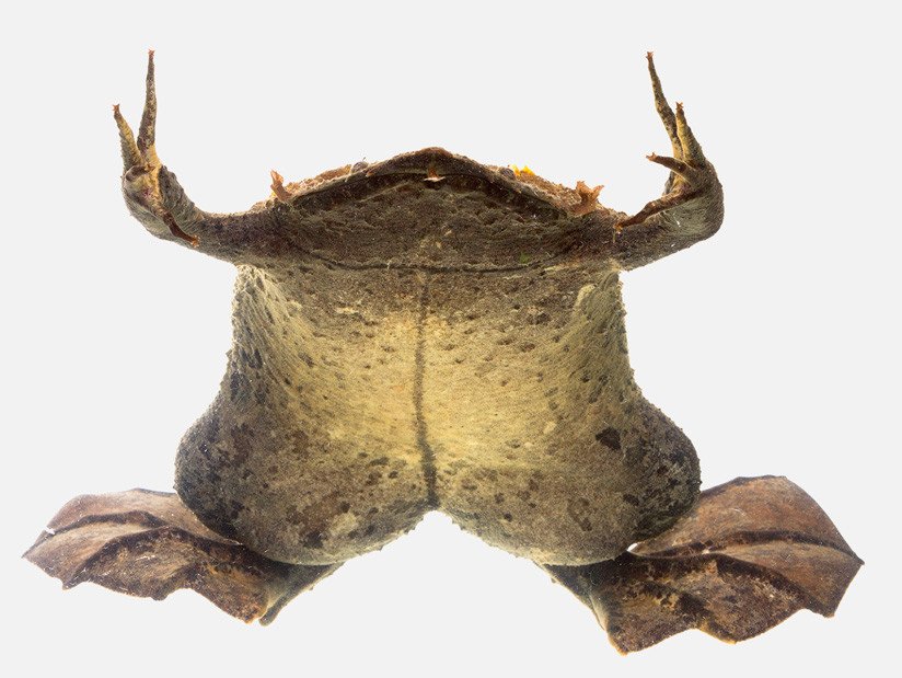 - "Lo más interesante de esta rana es su aspecto, parece una hoja, es sumamente plana, tiene membranas entre los dedos de la pata trasera que le permiten nadar", dice el biólogo.