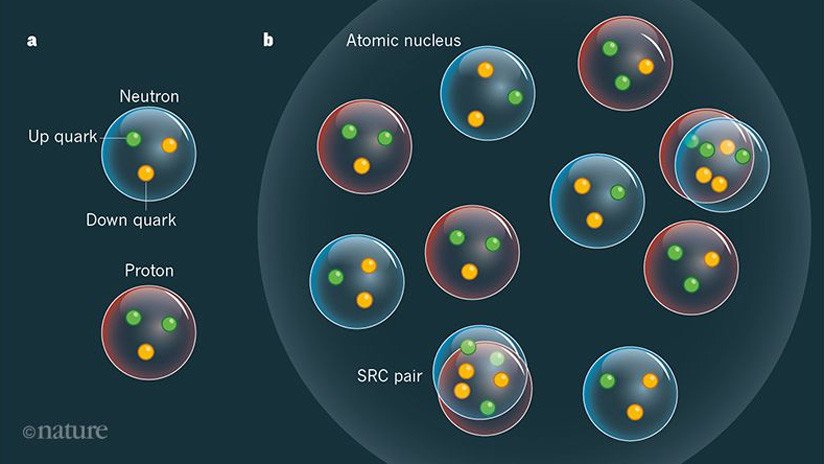 Esta diferencia se incrementa con la masa del núcleo, estableció en aquel entonces la European Muon Collaboration (EMC por sus siglas en inglés), pero la causa de ese fenómeno, denominado 'efecto EMC', ha sido un misterio durante 35 años. El equipo estadounidense sostiene que en un núcleo pesado se forman correlaciones de corto alcance entre pares de nucleones, de muy corta vida y llamados pares SRC (short-range correlated).