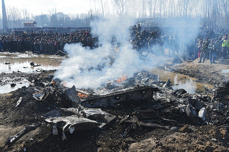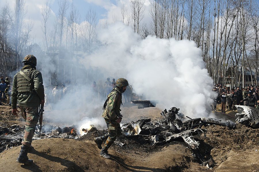 En las redes sociales se ha divulgado un video que muestra los restos de un helicóptero Mi-17 de la Fuerza Aérea India que se ha estrellado este 27 de febrero en el estado indio de Jammu y Cachemira.