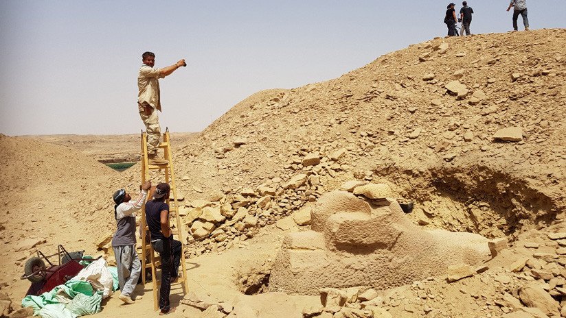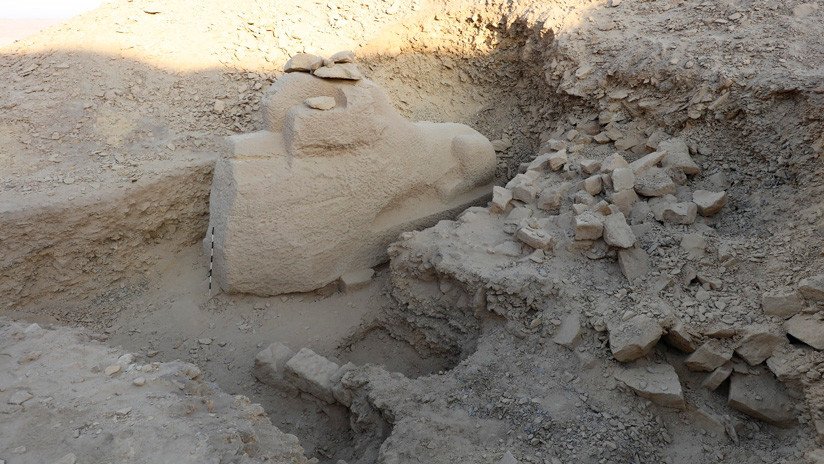 Entre los elementos descubiertos se encuentra una esfinge con cabeza de carnero hecha en piedra arenisca que ya era visible antes de las excavaciones y ahora el equipo de la Universidad de Lund (Suecia) y del Ministerio de Antigüedades de Egipto logró desenterrar por completo.