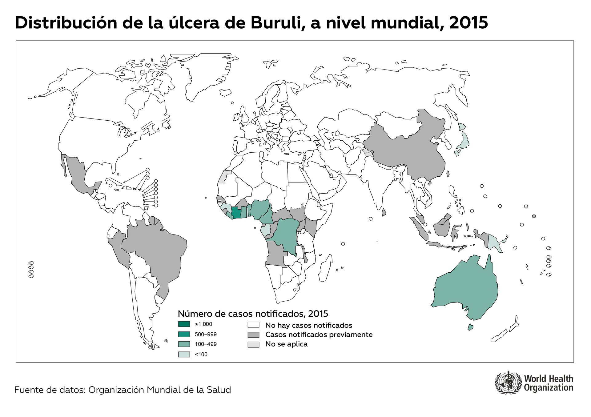 Hasta el momento, la infección se ha registrado en 33 países, según los datos de la Organización Mundial de la Salud, que determina esta dolencia como una "enfermedad tropical desatendida". Según su mapa elaborado en el 2015, la mayoría de los puntos calientes infecciosos se encuentran en los trópicos, sobre todo en las zonas africanas rurales con poco acceso a la atención médica.