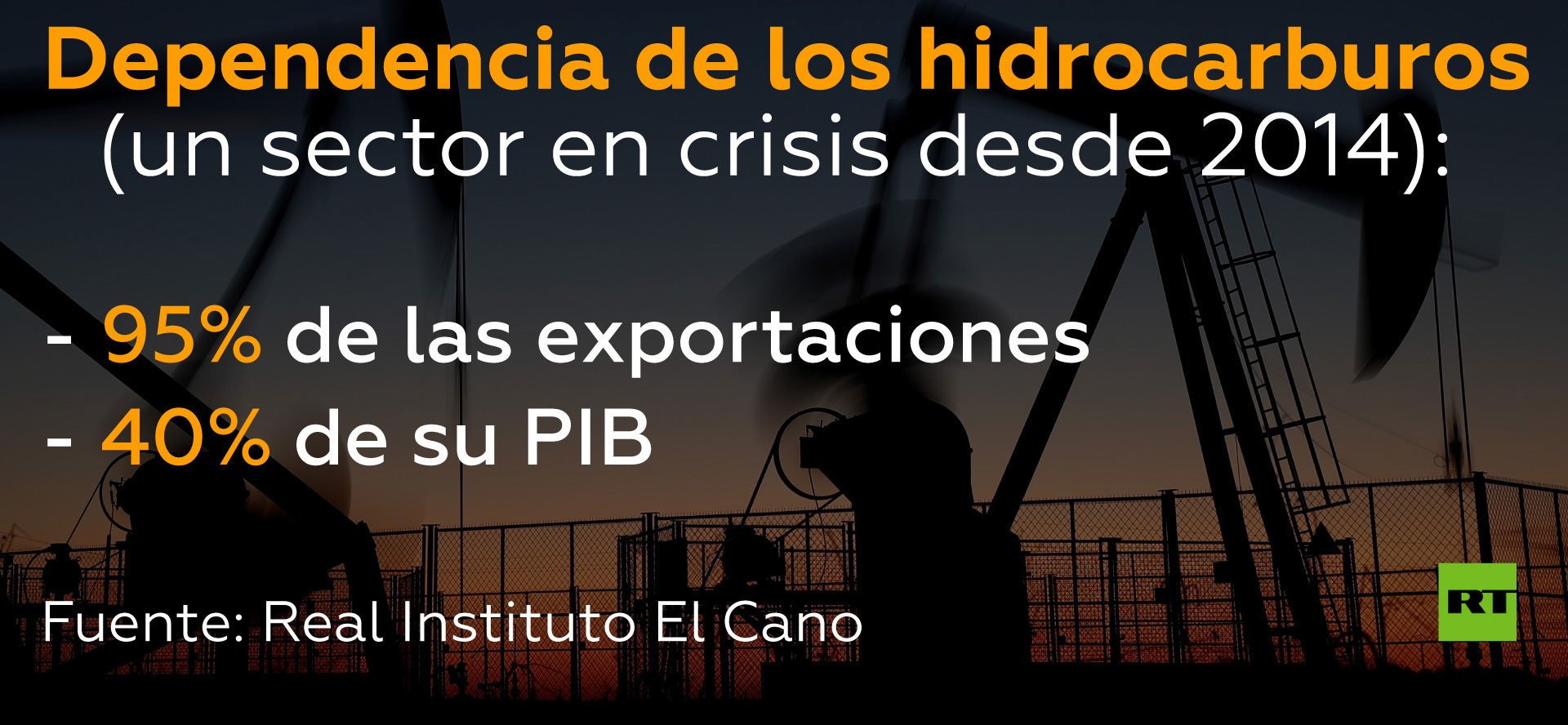 Las exportaciones argelinas dependen en un 95% de los hidrocarburos, que representan el 40% de su PIB. El problema de este modelo económico sin diversificar y dependiente de los recursos reside en que en 2014 hubo una crisis de los hidrocarburos cuyos precios cayeron y todavía no se han recuperado.