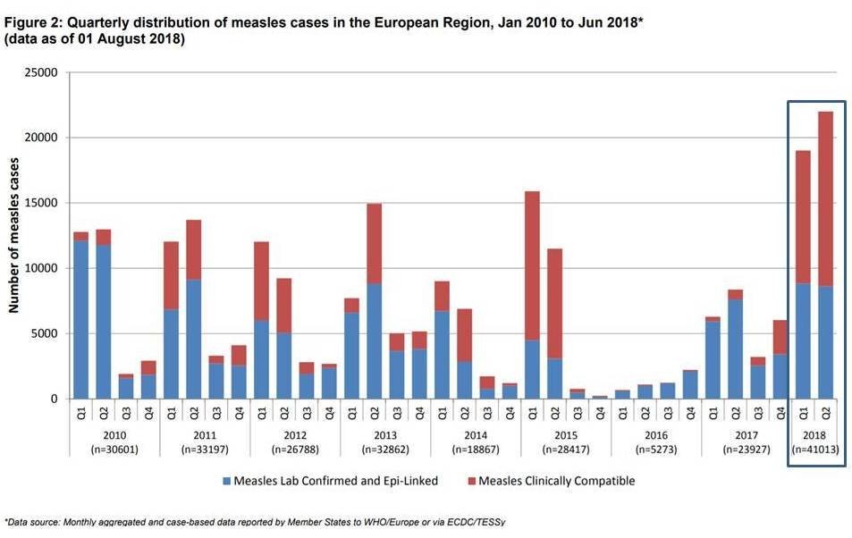 Y esto es lo que pasa cuando no nos vacunamos: en Europa se han detectado 41.013 casos de sarampión y ya hay 37 muertos, la cifra más alta desde 2010. https://t.co/Ykp6rN4K4apic.twitter.com/GKp1cEAnKd
