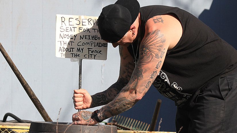 "Asiento reservado para el vecino entrometido que se quejó de mi cerca", escribió Jason en un cartel. "No sé quién es [el que me denunció] y estoy seguro de que no se presentará" a la fiesta, dijo Jason en declaraciones a la prensa local.