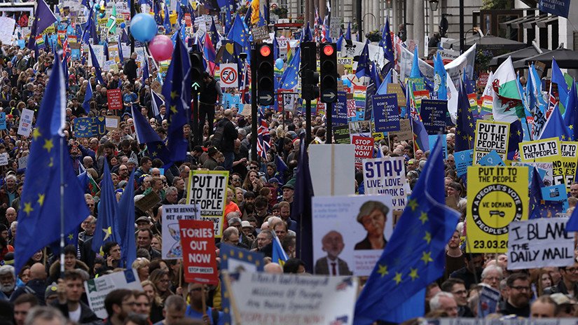 Los ciudadanos que se oponen al retiro de Reino Unido de la Unión Europea han salido a las calles este sábado para marchar a través del centro de Londres y exigir nuevas votaciones. Después de tres años de debate, todavía no se sabe si el Brexit se llevará a cabo, mientras Teresa May intenta salir de la crisis política.